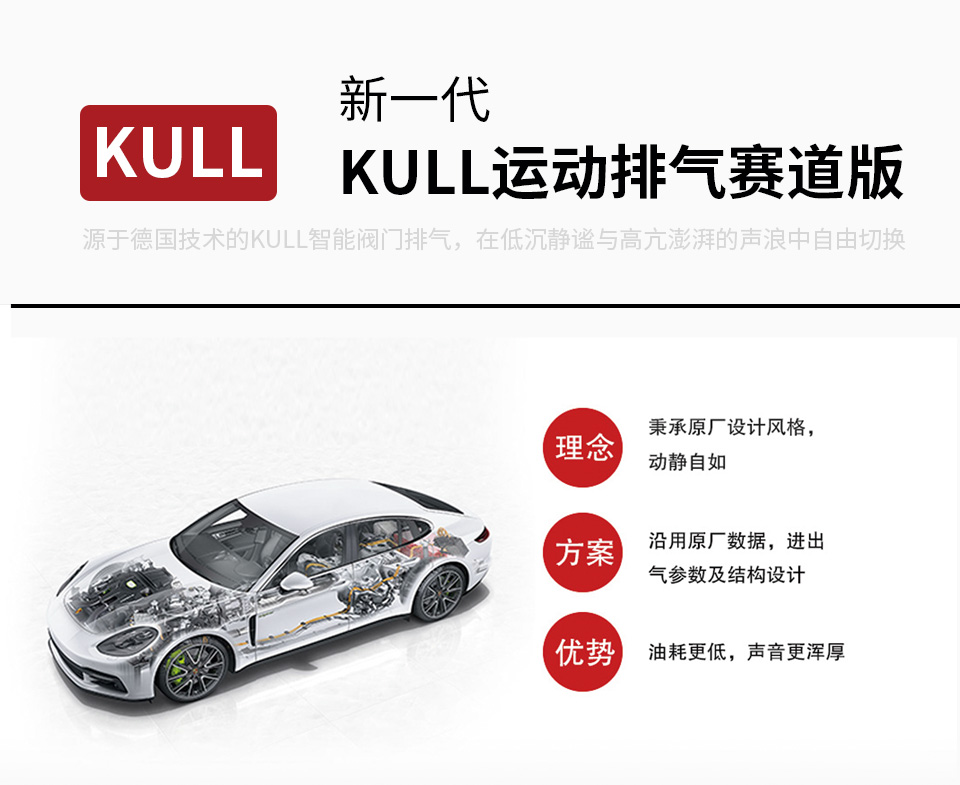點(diǎn):KULL排氣經(jīng)過德國專業(yè)保時(shí)捷改裝團(tuán)隊(duì)調(diào)校的智能閥門排氣系統(tǒng),怠速低吼,高轉(zhuǎn)亢奮,值得擁有!