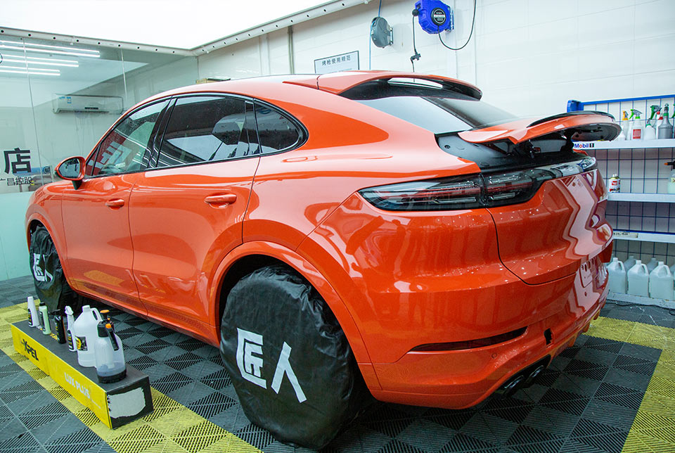 施工項目:保時捷熔巖橙卡宴 coepe貼隱形車衣