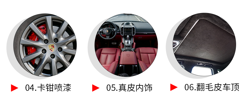 特 點: 卡宴Sport Design包圍,從視覺上告別了原車的黑色塑料感,與車身同色設計,提升了側面外觀的視覺感,使得整部卡宴愛車整體外觀更為協(xié)調,融合度更高,運動感十足!全車進口小牛皮波爾多紅內飾真皮豪華質感,可根據(jù)個性需求定制顏色方案!