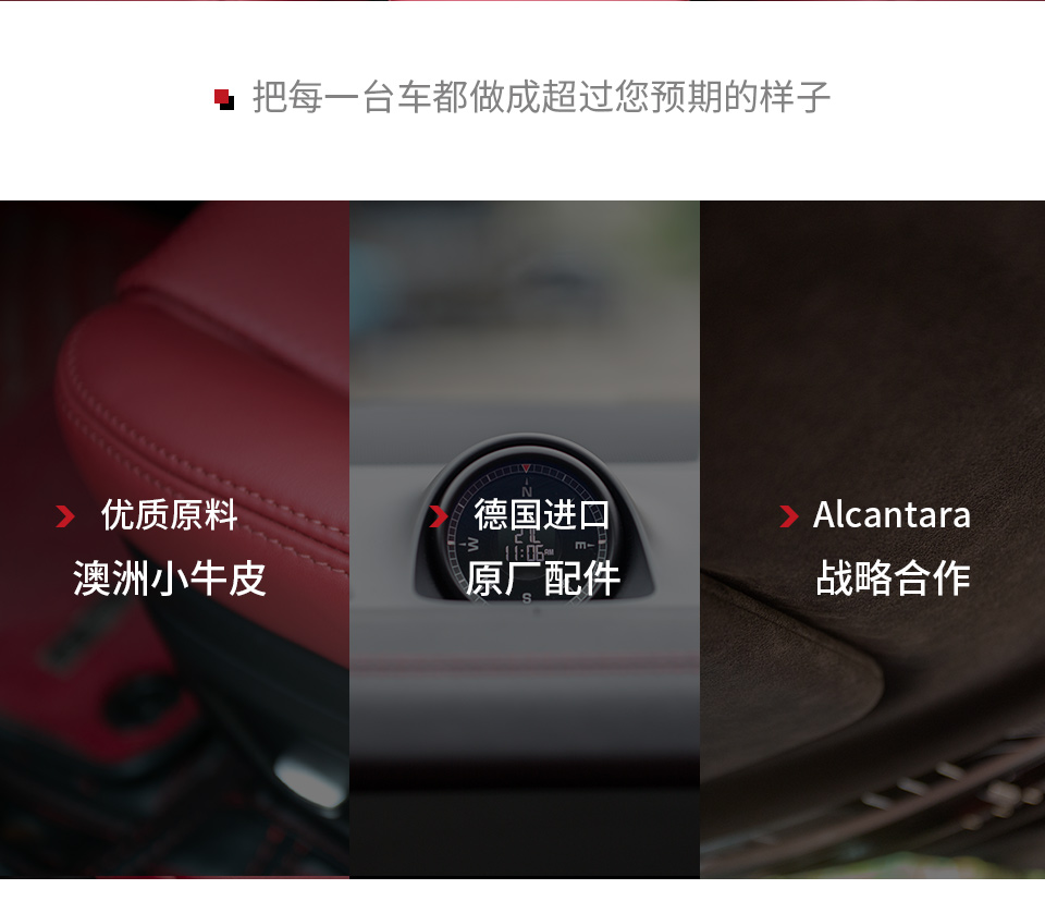 特 點(diǎn): 全車(chē)進(jìn)口小牛皮真皮內(nèi)飾真皮豪華質(zhì)感,可根據(jù)個(gè)性需求定制顏色方案!