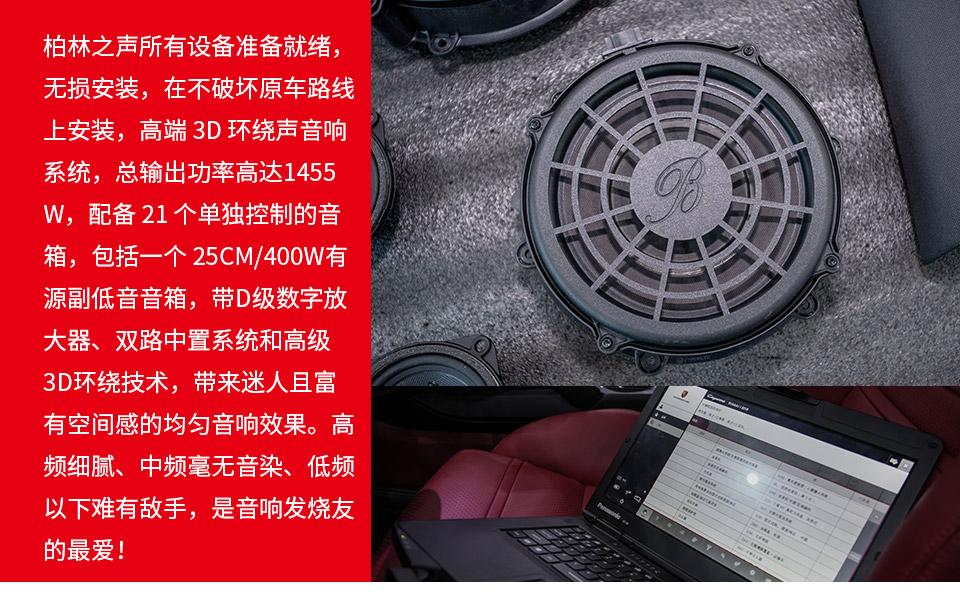 特 點: 德國原廠頂級音響柏林之聲,高端3D環(huán)繞音響系統(tǒng),作為營造殿堂級音樂的利器,滿足你奢華的視聽盛宴帶來更高的音質(zhì)和更動態(tài)的音響效果!