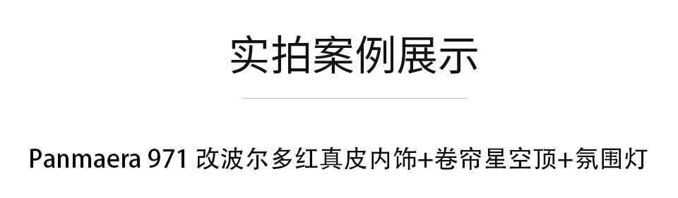 產(chǎn) 品 : 全車真皮內(nèi)飾(Nappa)+卷簾星空頂+卡鉗噴漆+氛圍燈