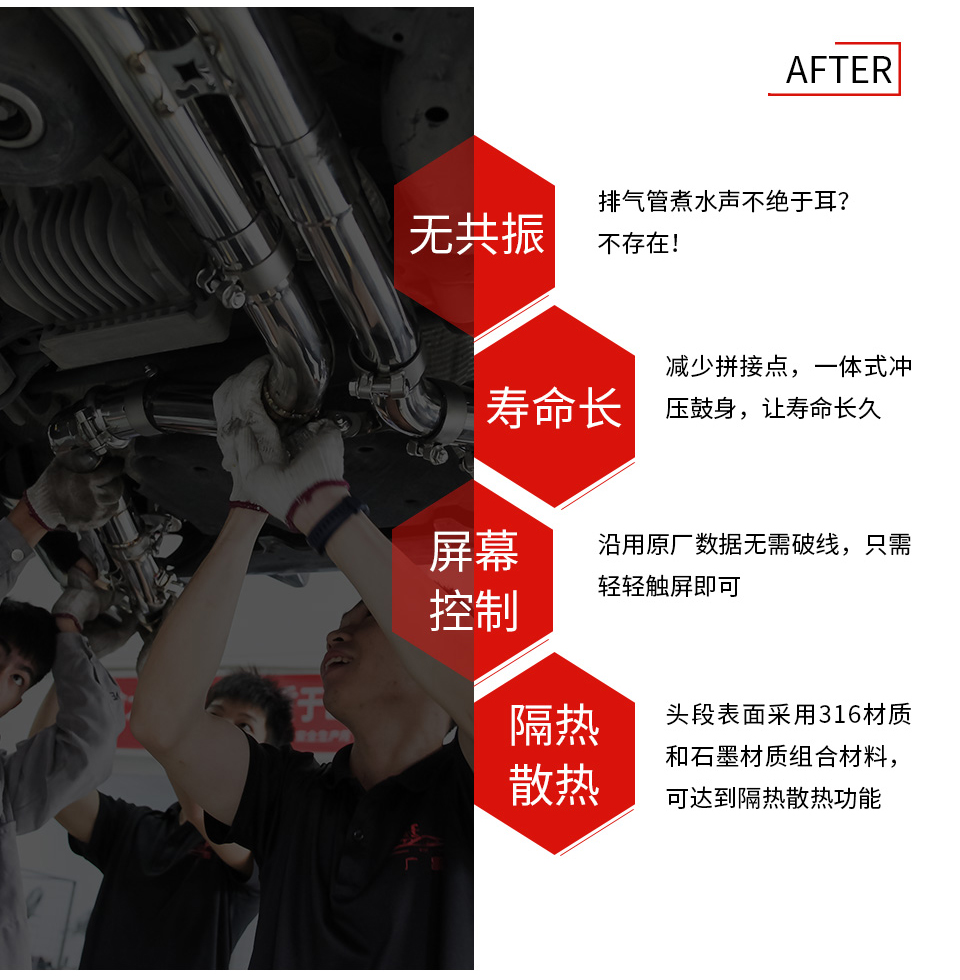 特 點: Kull排氣匹配運動駕駛方式的賽道聲浪 , 充滿運動氣息 , 絕不平凡 , 在聲浪方面也不妥協(xié) , 強勁澎湃!