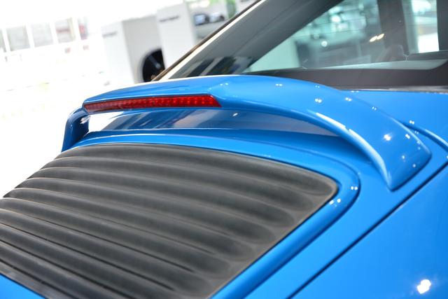 除了全玻璃車頂,性感且獨(dú)特的一體式尾燈也是993 Targa的迷人之處,同時(shí),加寬的輪距也讓車尾45°視角更加飽滿、更加耐看。此外,車尾的進(jìn)氣格柵為老式的風(fēng)冷引擎提供了新鮮空氣,在高速行駛時(shí)可以自動(dòng)升起或者通過(guò)中控控制按鍵將其開(kāi)啟來(lái)增加下壓力,而本次實(shí)拍的車型還加裝了小尾翼,使其彰顯動(dòng)感一面。