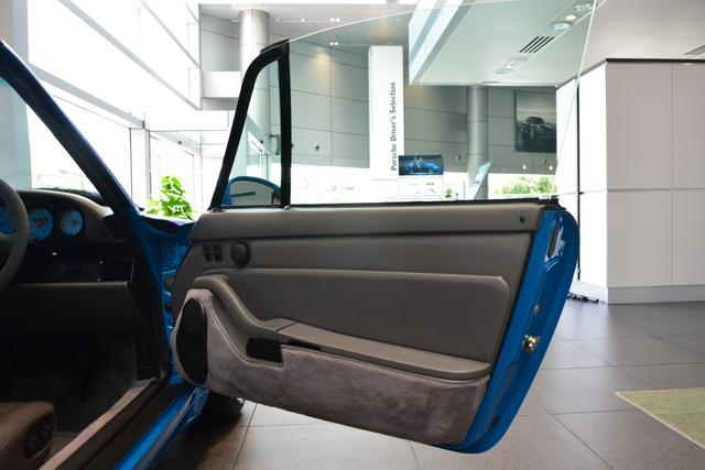 眼前的這輛保時(shí)捷911(993)Targa是眾多豪華館藏車之一,到了第四代,也就是末代風(fēng)冷的993 Targa,其第一次使用了全玻璃車頂設(shè)計(jì),而在當(dāng)時(shí)也成為了新賣點(diǎn)。