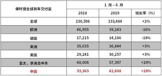 截至6月底,保時(shí)捷在中國市場銷量實(shí)現(xiàn)高達(dá) 28% 的增幅。在亞太、非洲及中東地區(qū),新車交付量達(dá) 57,397 臺(tái),較 2018 年同期相比增長20%。在美國,保時(shí)捷新車交付量2019年上半年達(dá)30,257臺(tái),同比增長3%,持續(xù)穩(wěn)固其在美國市場的地位。